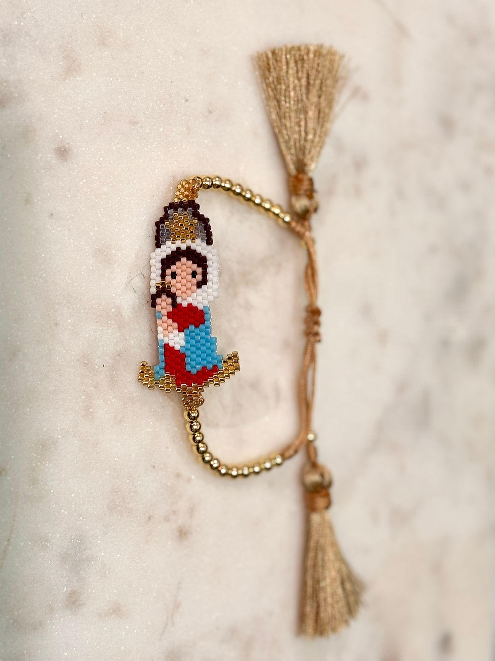 Manilla Virgen de Guadalupe – Nudos y Cuentas Doradas (Acero Inoxidable)