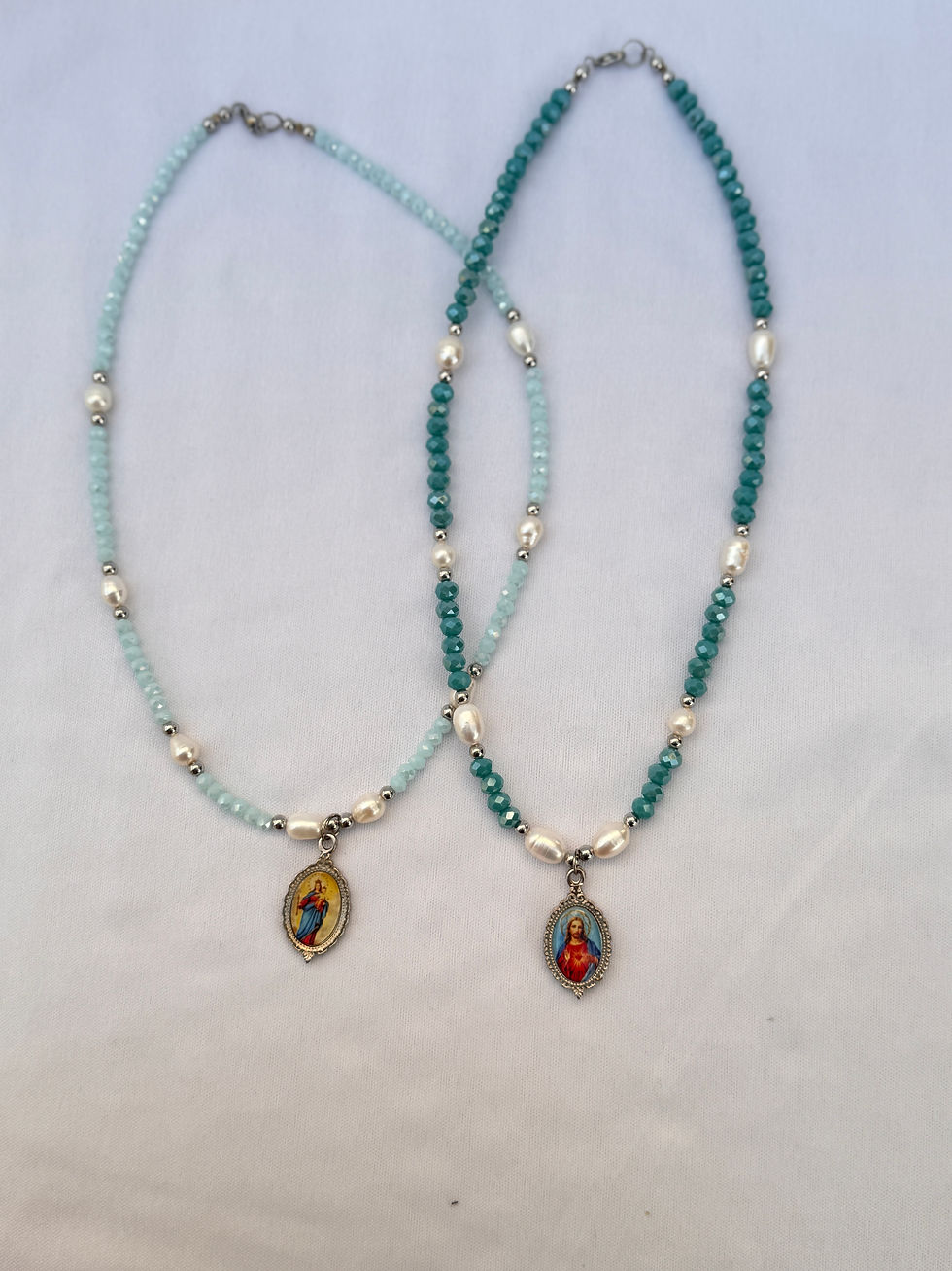 Collar Detente Sagrado Corazón – Perlas y Acero Inoxidable